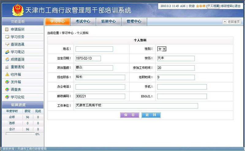 天津工商局干部培訓(xùn)系統(tǒng)......