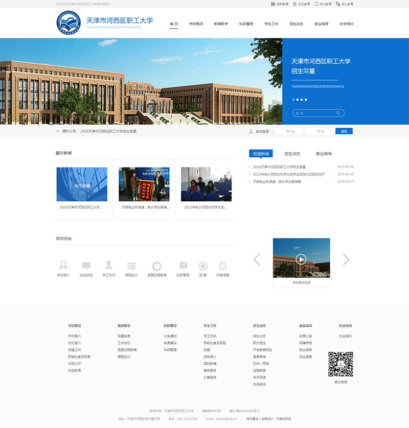 天津市河西區(qū)職工大學(xué)(又稱天津市廣播電視大學(xué)河西分校、天津市城市職業(yè)學(xué)院河西分院)始建于1960年春,是一所經(jīng)市政府批準(zhǔn),教育部備案的獨(dú)立設(shè)置的成人高校。目前我校已經(jīng)成為集職工大學(xué)、廣播電視大學(xué)、遠(yuǎn)程教育、高等職業(yè)院校、開放大學(xué)、社區(qū)教育和社會(huì)培訓(xùn)為一體的辦學(xué)實(shí)體,涵蓋了大專(含高職)、本科,多層次、多科類的30多個(gè)專業(yè)。學(xué)校占地面積6.72畝,總建筑面積5658.12平方米。學(xué)校內(nèi)設(shè)置...