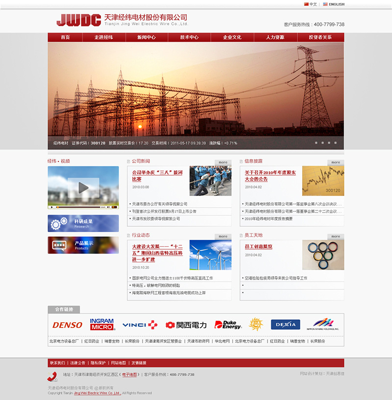 天津經(jīng)緯電材股份有限公司成立于1999年,座落于美麗的渤海之濱——天津市津南經(jīng)濟(jì)開發(fā)區(qū)西區(qū)。2008年12月30日,企業(yè)以凈資產(chǎn)折股,由有限公司整體變更為股份公司。2010年9月17日,公司首次公開發(fā)行人民幣普通股2,200萬(wàn)股并在深圳證券交易所創(chuàng)業(yè)板掛牌交易,股票簡(jiǎn)稱:經(jīng)緯電材,股票代碼:300120...