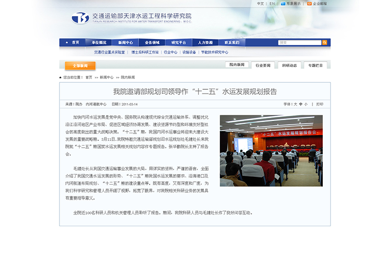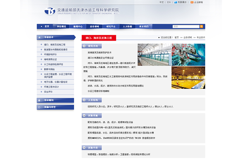 交通運(yùn)輸部天津水運(yùn)工程科學(xué)研究院(簡稱天科院),是交通運(yùn)輸部直屬科研事業(yè)單位,承擔(dān)海岸河口、內(nèi)河航道、環(huán)境保護(hù)、港工結(jié)構(gòu)、通航、水利等領(lǐng)域的科研、技術(shù)咨詢工作...