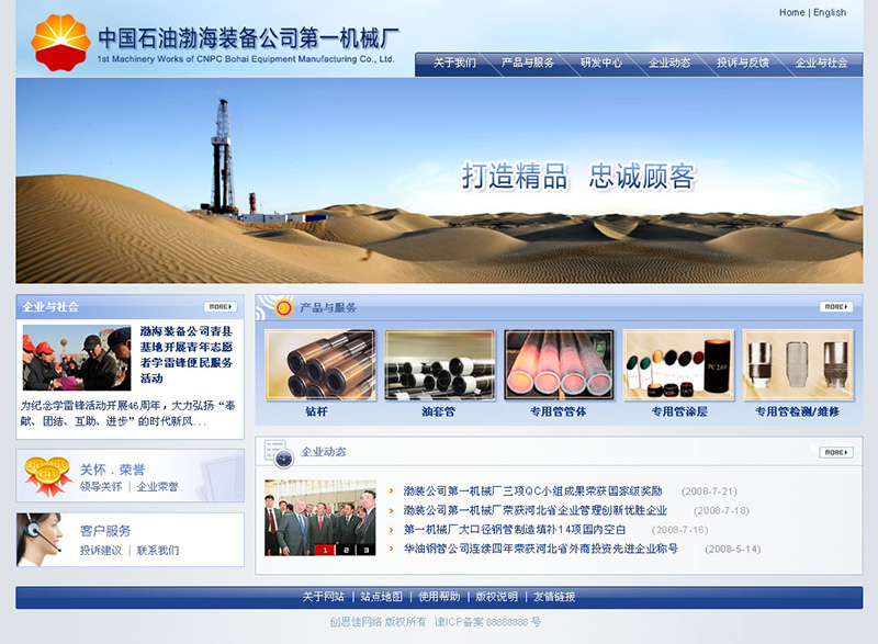 基于目前互聯(lián)網(wǎng)的發(fā)展現(xiàn)狀和公司原有網(wǎng)站更改不方便等問(wèn)題,現(xiàn)需求符合企業(yè)品牌及文化的網(wǎng)絡(luò)平臺(tái)宣傳企業(yè)。渤海石油裝備制造有限公司第一機(jī)械廠是中國(guó)石油天然氣集團(tuán)公司所屬石油專(zhuān)用管生產(chǎn)基地,是一個(gè)集鉆桿、油套管、管體、石油專(zhuān)用管防腐及鉆桿檢測(cè)/修理及于一體的綜合性工廠。工廠前身是華北石油管理局第一機(jī)械廠,始建于1976年,工業(yè)占地面積199萬(wàn)㎡?,F(xiàn)有職工874人,具有很強(qiáng)的設(shè)計(jì)、研制、開(kāi)發(fā)和生產(chǎn)能力...